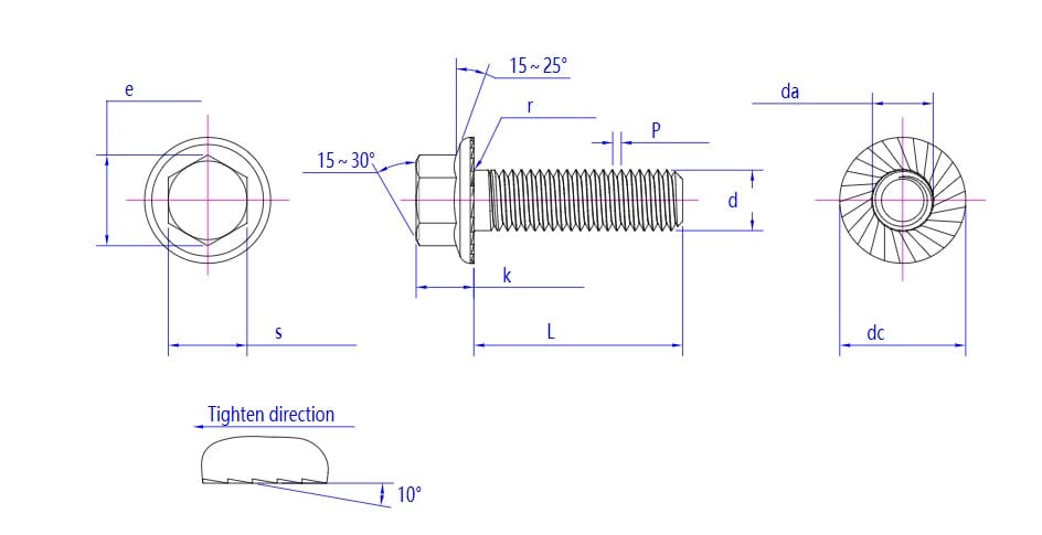 - Serrated flange surface to prevent loosening during use