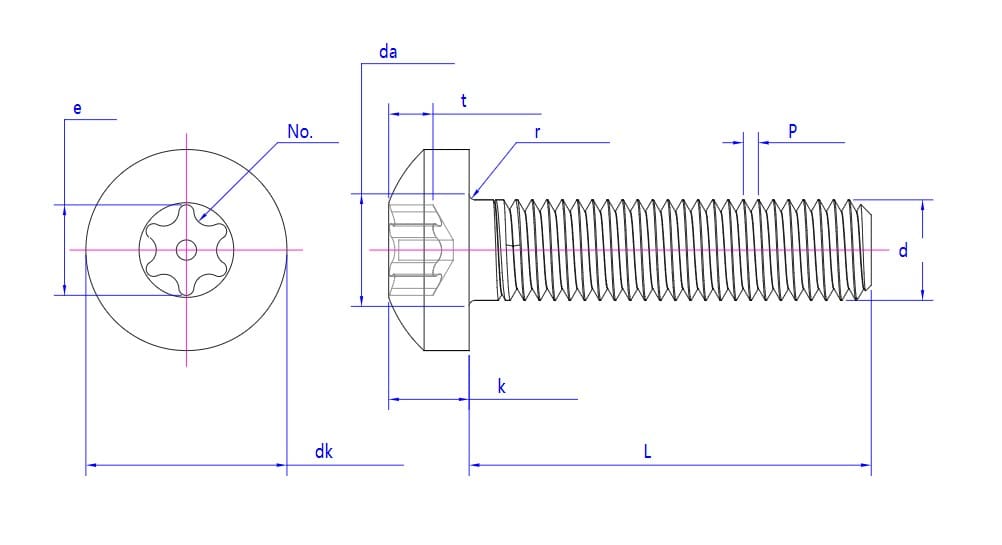 | No. | T6 | T8 | T10 | T15 | T20 | T25 | T30 | T45 | T50 |