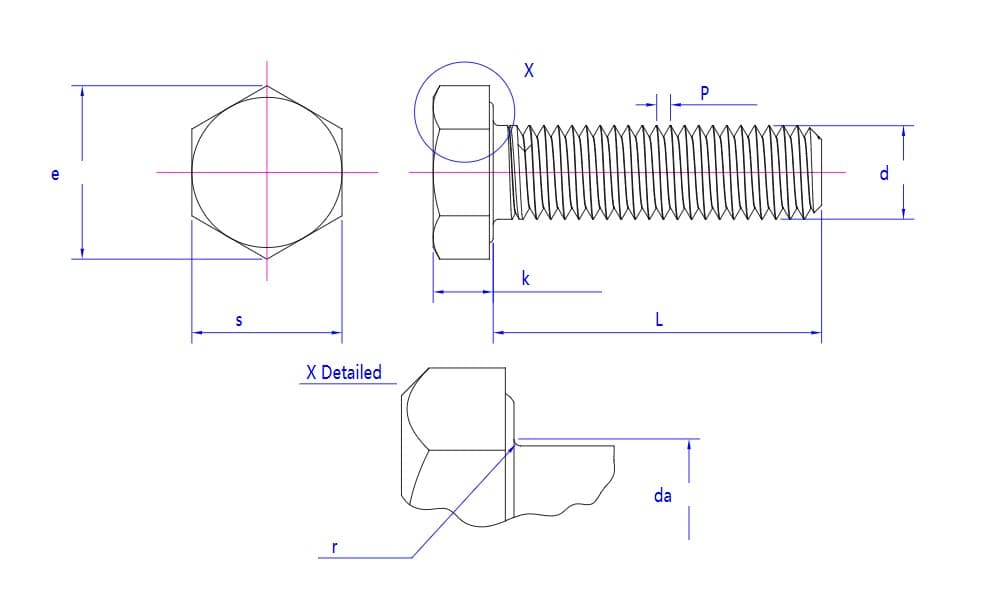 - Comprimento da rosca (e min): de 3,41 mm até 39,98 mm para tamanhos maiores